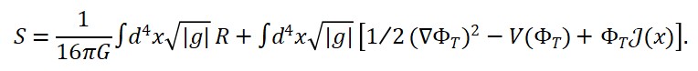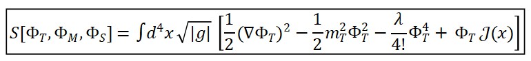 Stotal[ΦT , ΦM , ΦS ] = Smatˊeria[ΦM ] + Sgeometria[ΦS ] + Stempo[ΦT ]