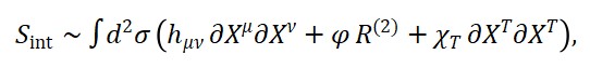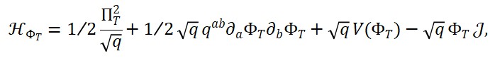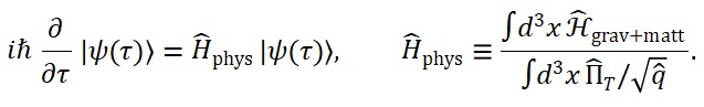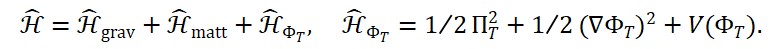 onde o operador □ age sobre o campo quântico de tempo ΦT (x), e os operadores ΦM (x) e ΦS (x) representam a matéria e a geometria em sua forma quântica.