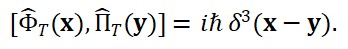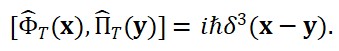 A partir desse funcional de ação, definem-se os momentos conjugados Π_T(x) e Π_S(x) associados a cada campo, permitindo estabelecer as relações de comutação canônicas: