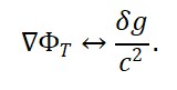 O campo do tempo ΦT é uma função da variação espacial da curvatura do espaço e da densidade de matéria, segundo: