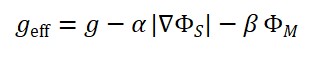 Em termos mais específicos, para a interação do campo de tempo emergente com a matéria e a geometria, uma forma simplificada da equação de movimento poderia ser escrita como:
