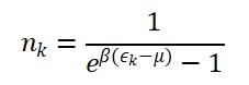 ⟨ n_k⟩ = 1 / (e^{β(ℏ ω_k – μ)} – 1)