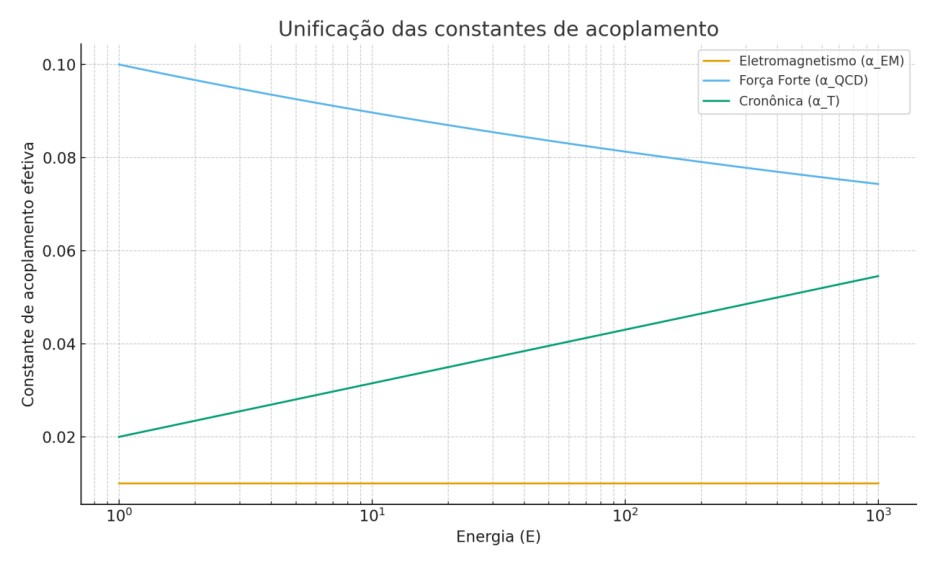 Para estender a teoria do tempo emergente em direção a uma unificação com as forças fundamentais da natureza, propomos a incorporação dos campos de gauge do Modelo Padrão — SU(3) (força forte), SU(2)×U(1) (força eletrofraca) — ao lagrangiano total.