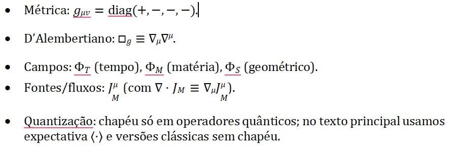 Aqui, o operador d’Alembertiano atua como propagador entrópico, e o termo à direita corresponde à fonte de entropia quântica que gera o tempo emergente.