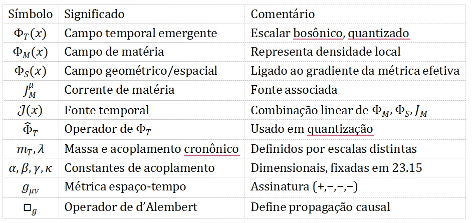onde 𝑀∗ é uma escala cronônica de energia que garante consistência dimensional. Seu valor pode ser calibrado em experimentos de relógios ópticos